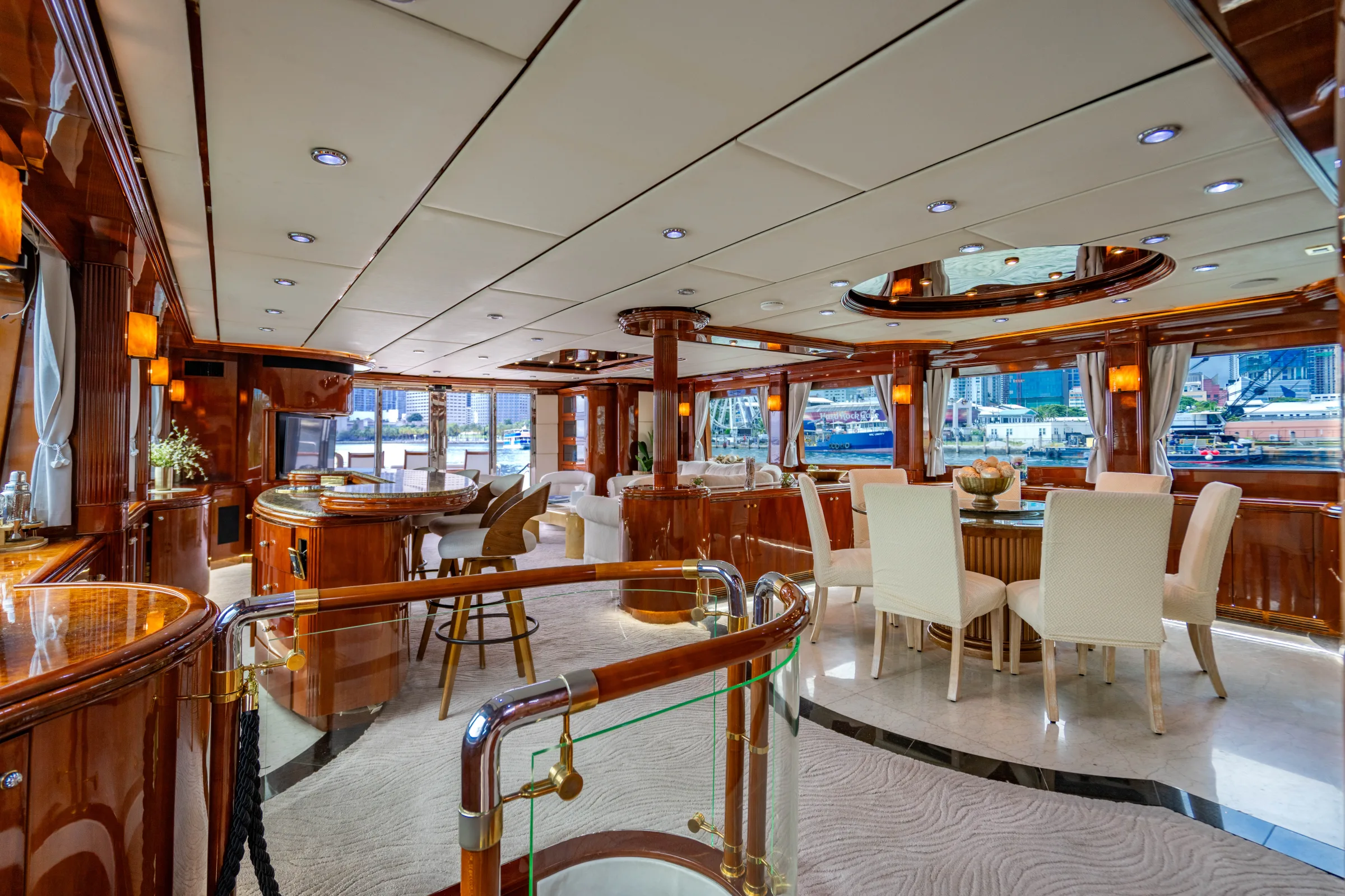 The 105' AQUA comfortably accommodates 2 to 13 guests. For the best experience, we recommend keeping groups within this range. Contact us if you have a larger group — we can suggest alternatives or arrange multiple vessels.