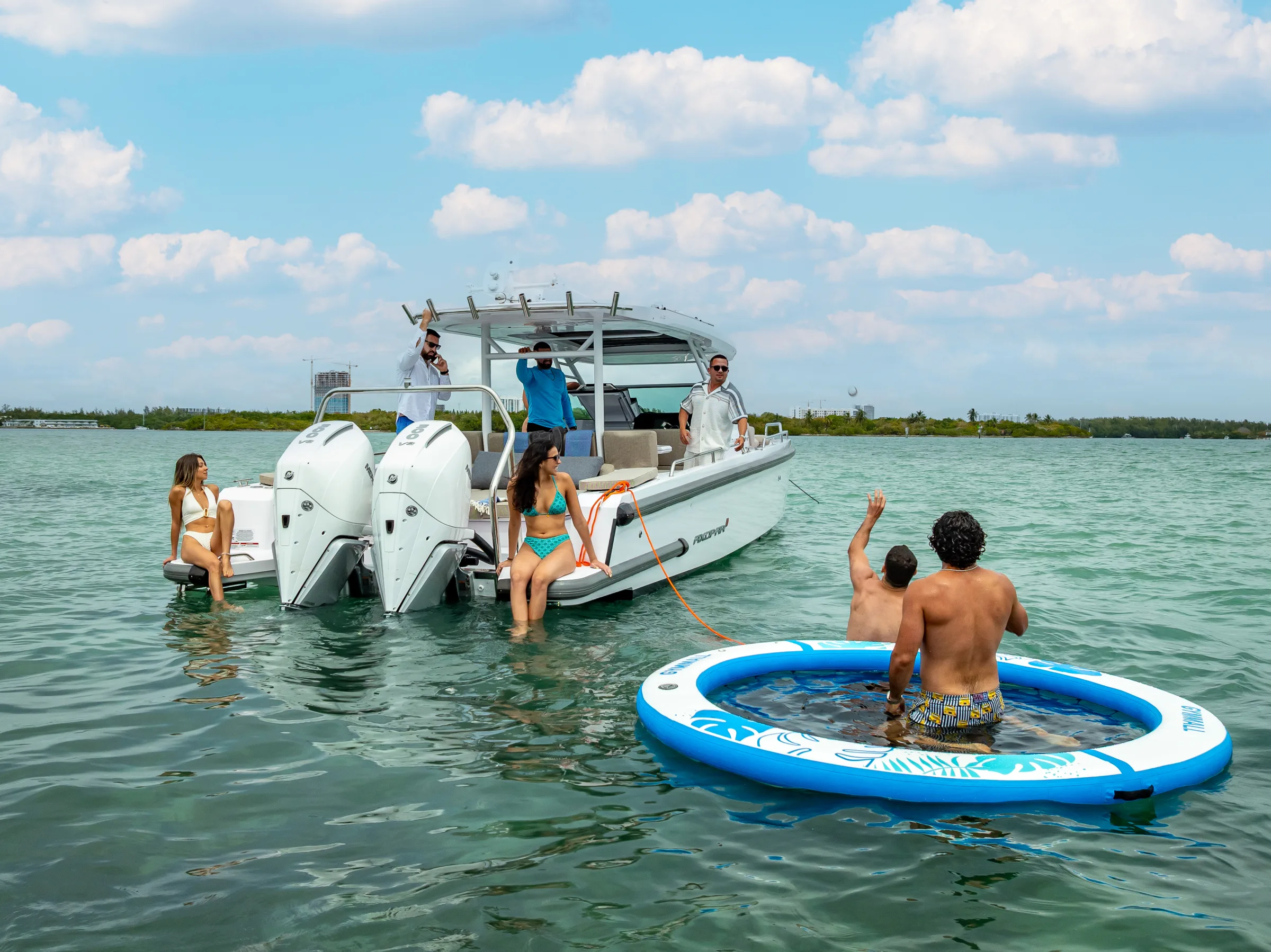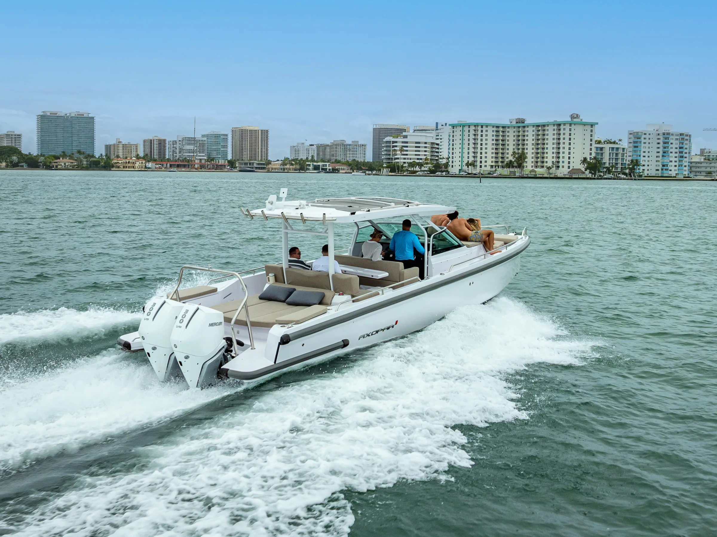 Every charter on the 2025 Axopar 37 Adventure Edition is all-inclusive — your licensed USCG captain, fuel, and crew are included in the rate. Gratuity for your crew (15–20%) is customary but not mandatory. Add-ons like catering, decorations, and water sports equipment are available upon request.