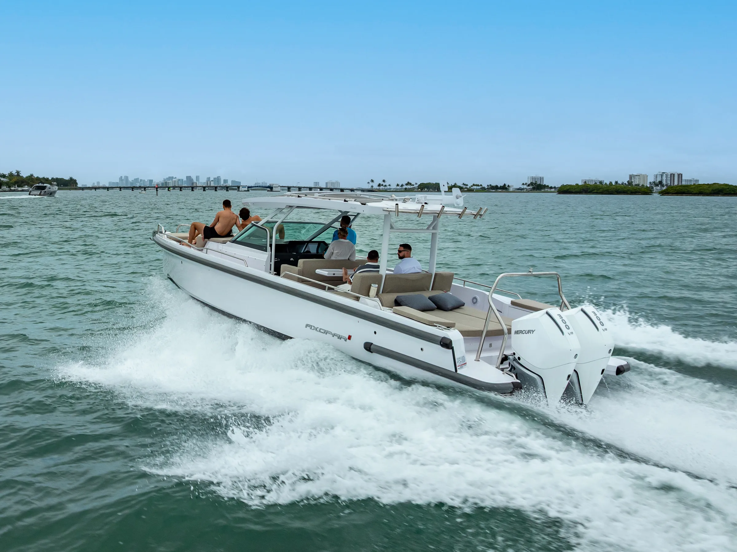 Every charter on the 2025 Axopar 37 Adventure Edition includes a licensed USCG captain, fuel for the trip, and crew. Gratuity (15–20%) is customary but not mandatory. Add-ons like catering, decorations, and water sports equipment are available for an additional fee.