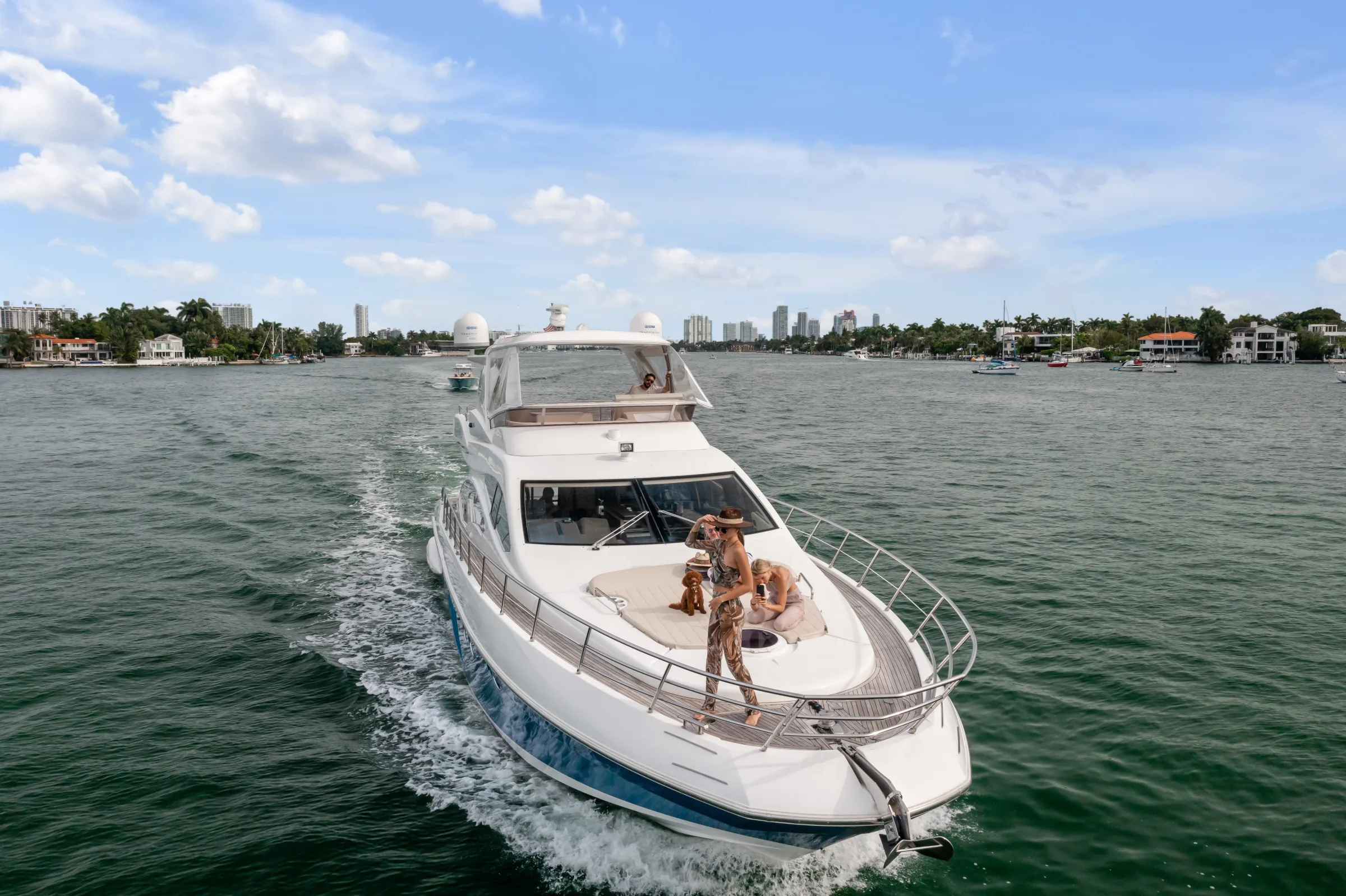 Every charter on the 66' Azimut includes a licensed USCG captain, fuel for the trip, and crew. Gratuity (15–20%) is customary but not mandatory. Add-ons like catering, decorations, and water sports equipment are available for an additional fee.