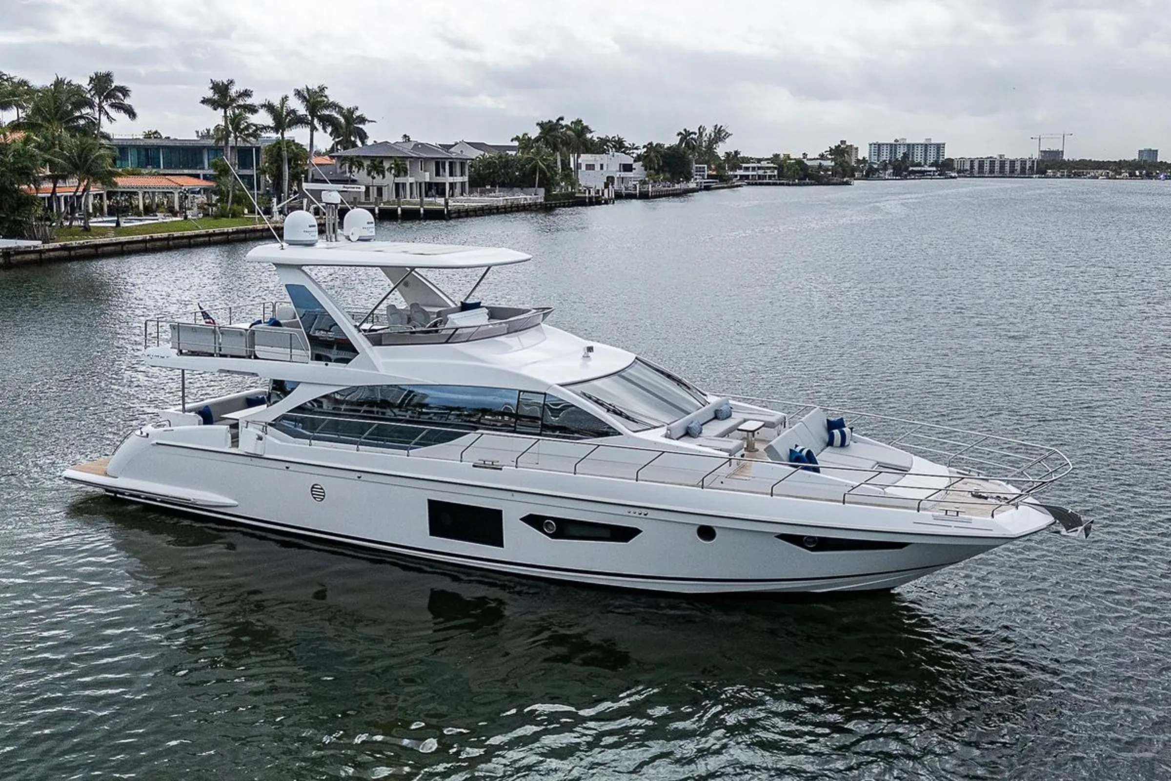 Every charter on the 66' Azimut LME is all-inclusive — your licensed USCG captain, fuel, and crew are included in the rate. Gratuity for your crew (15–20%) is customary but not mandatory. Add-ons like catering, decorations, and water sports equipment are available upon request.