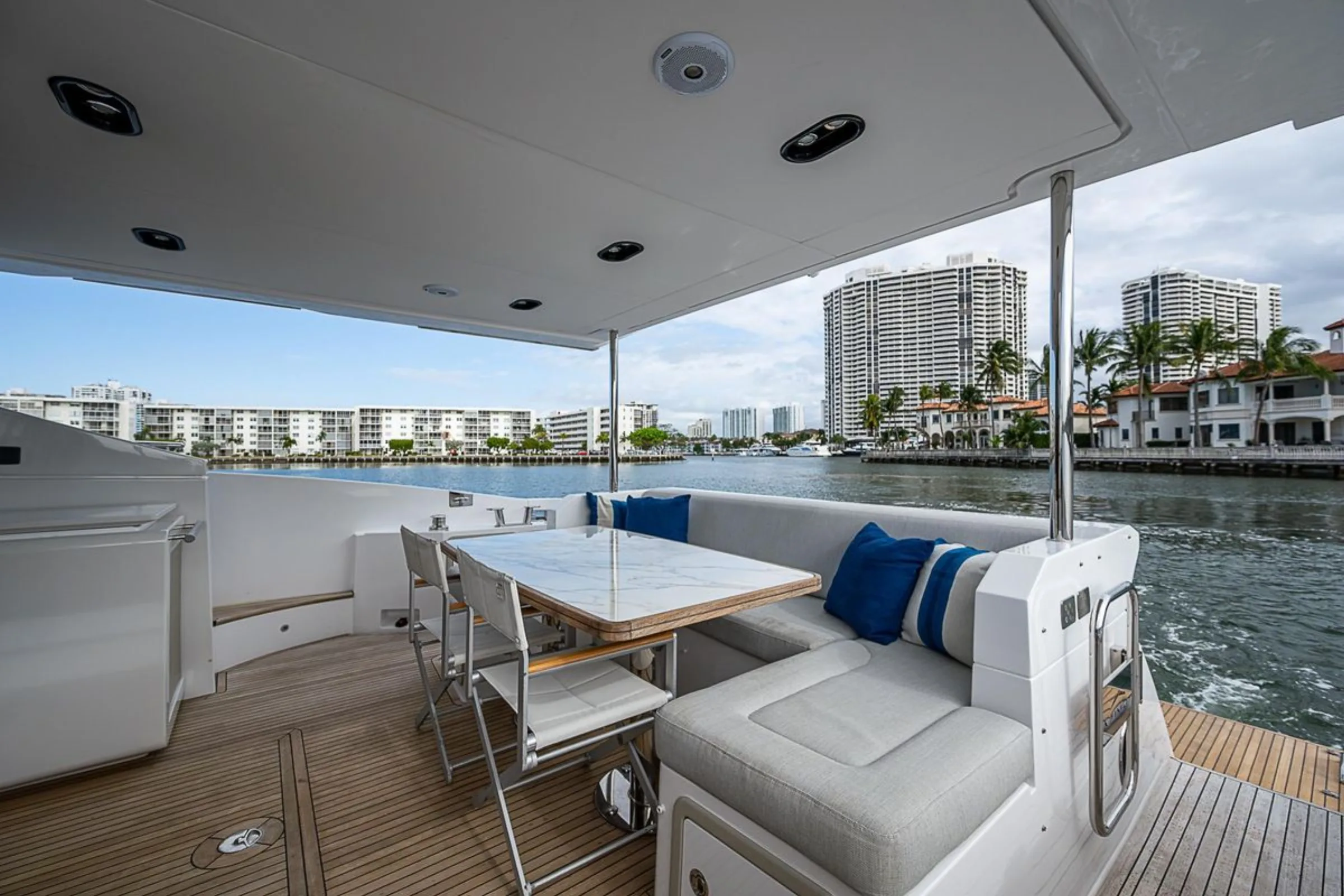 The 66' Azimut LME comfortably accommodates 2 to 13 guests. For the best experience, we recommend keeping groups within this range. Contact us if you have a larger group — we can suggest alternatives or arrange multiple vessels.