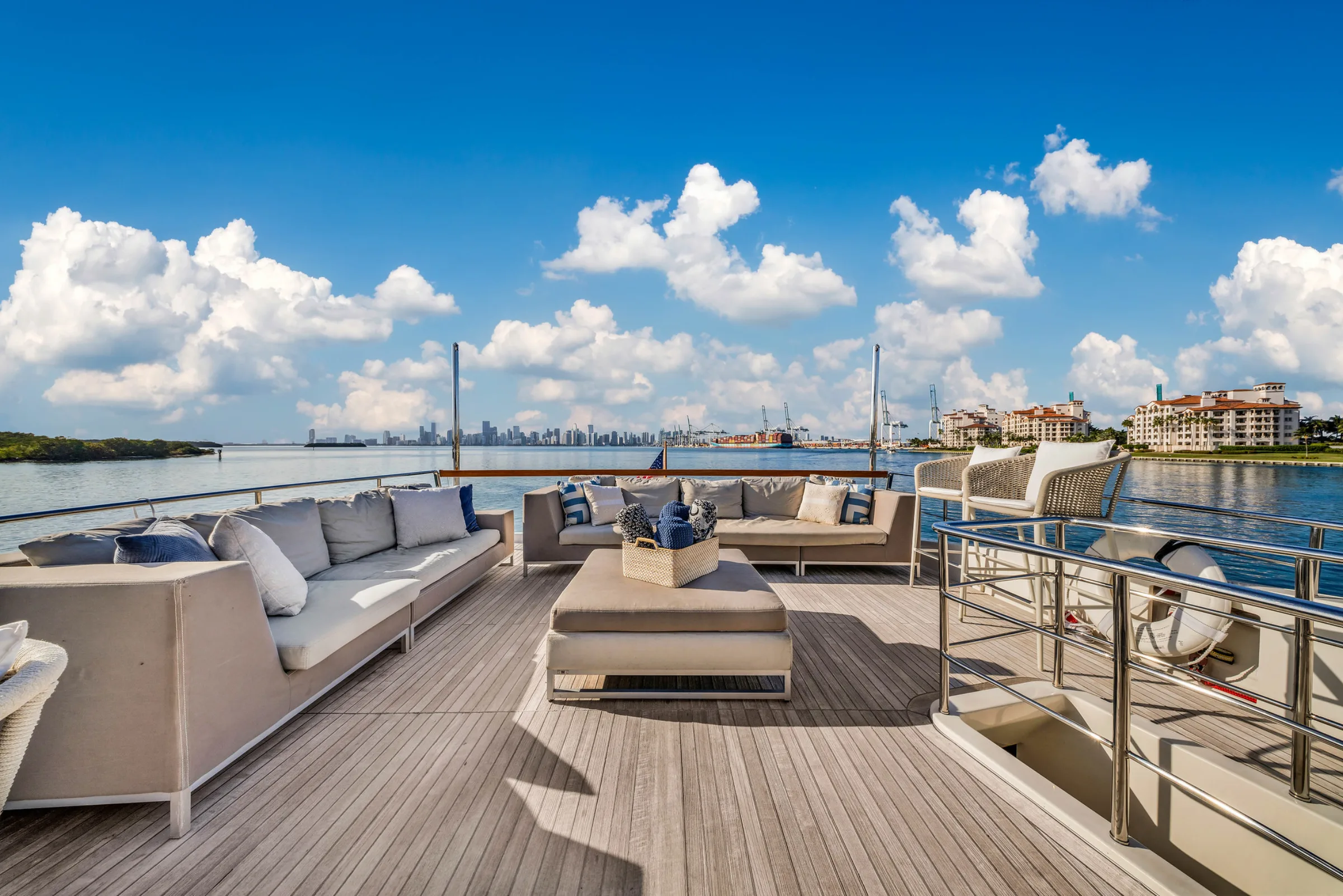 Every charter on the 97' San Lorenzo "Astonish" is all-inclusive — your licensed USCG captain, fuel, and crew are included in the rate. Gratuity for your crew (15–20%) is customary but not mandatory. Add-ons like catering, decorations, and water sports equipment are available upon request.